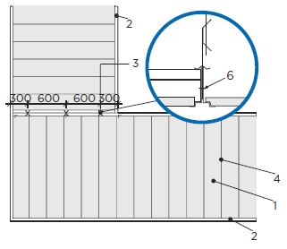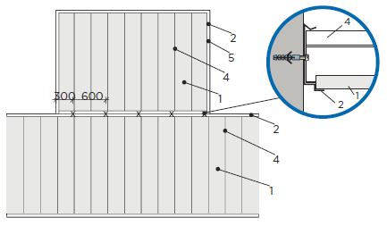 K příčkám s opláštěním deskami Habito H, Rigidur nebo Glasroc F Ridurit lze připevnit obvodový profil pomocí vrutů s plochou hlavou typu FN do opláštění příčky nezávisle na poloze R-CW profilů příčky.