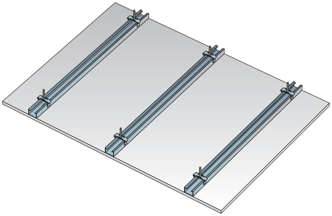 - nosné profily 1x UA + montážní profily R-CD připojené spojkou Klik-Fix, která je kotvena k nosným profilům pomocí šroubů 2x LB 421 4,2 x 13 mm