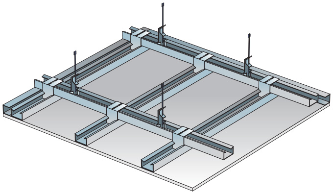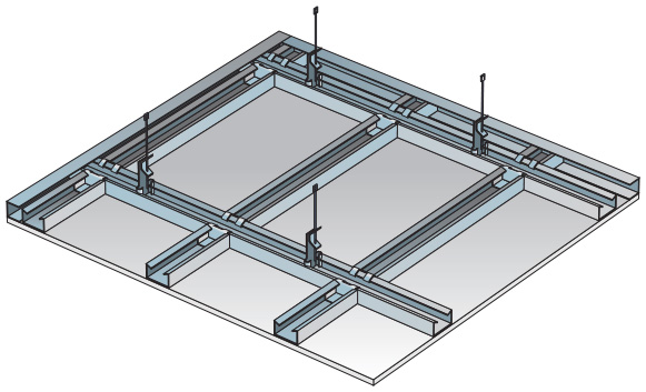 Zavěšený podhled na křížovém roštu z profilů R-CD