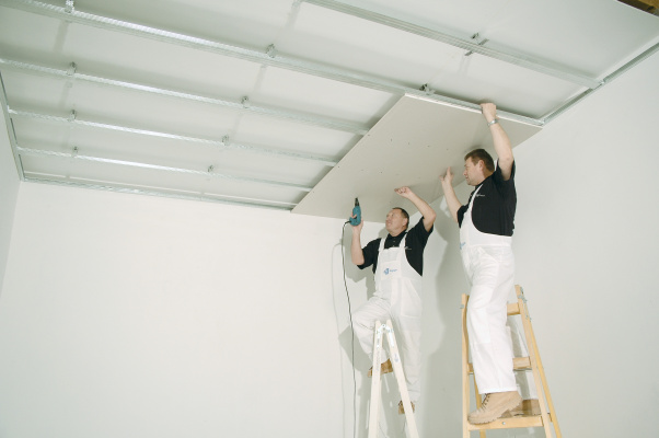 Opláštění deskových podhledů Rigips se provádí sádrokartonovými nebo sádrovláknitými deskami Rigips. Desky se šroubují k montážním profilům R-CD v rozteči max. 170 mm (nebo k dřevěným latím). Přitom styk příčných hran desek musí být umístěn na montážním profilu (lati).