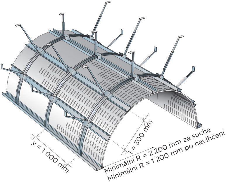 Obloukové a zvlněné podhledy a klenby se montují na připravenou tvarovanou konstrukci s použitím sádrovláknitých desek Glasroc F Riflex (Multiboard) nebo velkoplošných desek Gyptone BIG Curve.