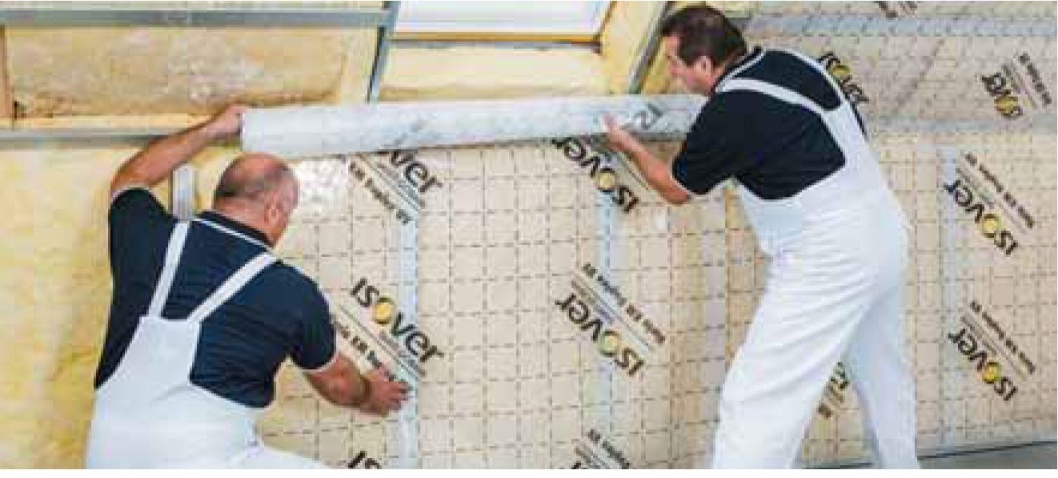 - Otvory po sponkovačce v pásech přelepit k tomu určenou lepicí páskou nebo použít řešení bez sponek (např. Isover Vario® XtraFix).
