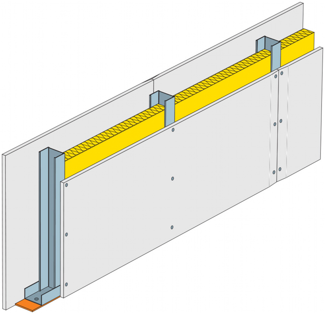 Izolace z minerálních vláken se do dutiny příčky vloží po opláštění první strany příčky a po uložení požadované elektroinstalace (resp. instalace zdravotní techniky apod.). Minerální izolaci lze volit buď v rolích (např. skelná izolace Isover Piano), nebo v deskách (např. čedičová izolace Isover Orset). Počet vrstev, tloušťka, objemová hmotnost, resp. typ minerální izolace musí být v souladu s předepsanými požadavky na požární odolnost a vzduchovou neprůzvučnost – viz Technické listy konstrukcí na www.rigips.cz.