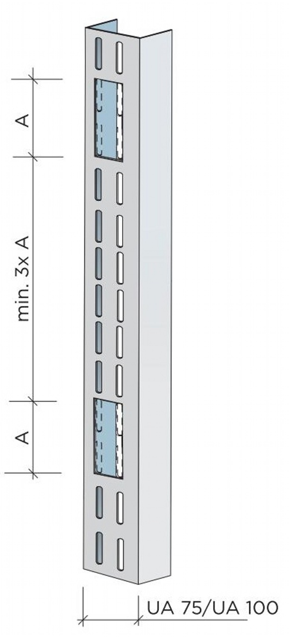 K ukotvení profilů UA ke stropu a podlaze se použijí úhelníky suvné, které jsou do UA profilů pouze nasunuty,