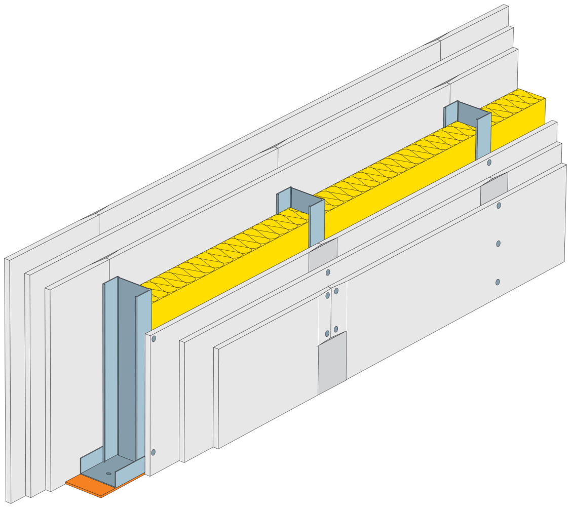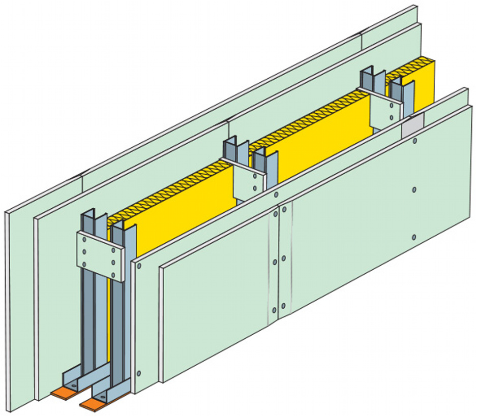 Montují se na konstrukci z profilu CW 150, opláštění se provádí jednou, dvěma nebo třemi vrstvami sádrokartonových desek RB (A) nebo RF (DF).