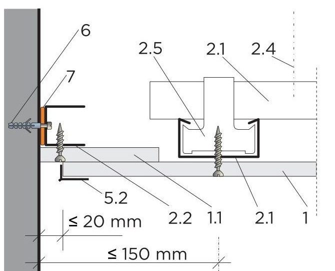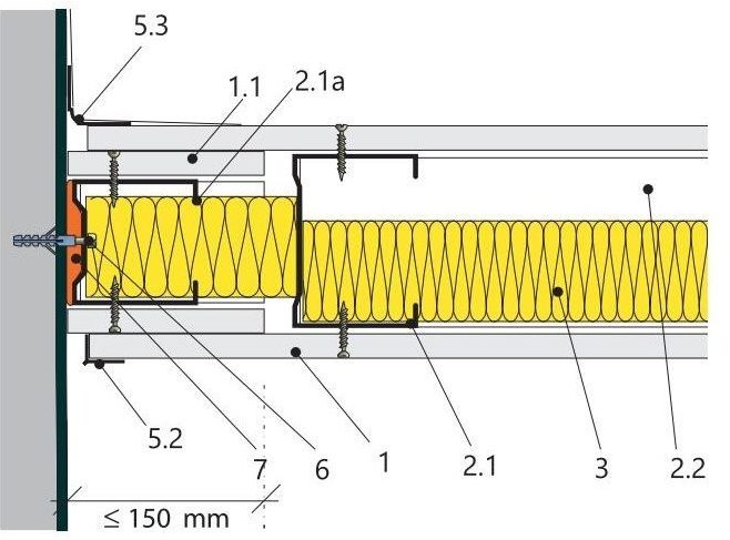 Napojení podhledu na stěnu – volné, se stínovou spárou a profilem R-UD