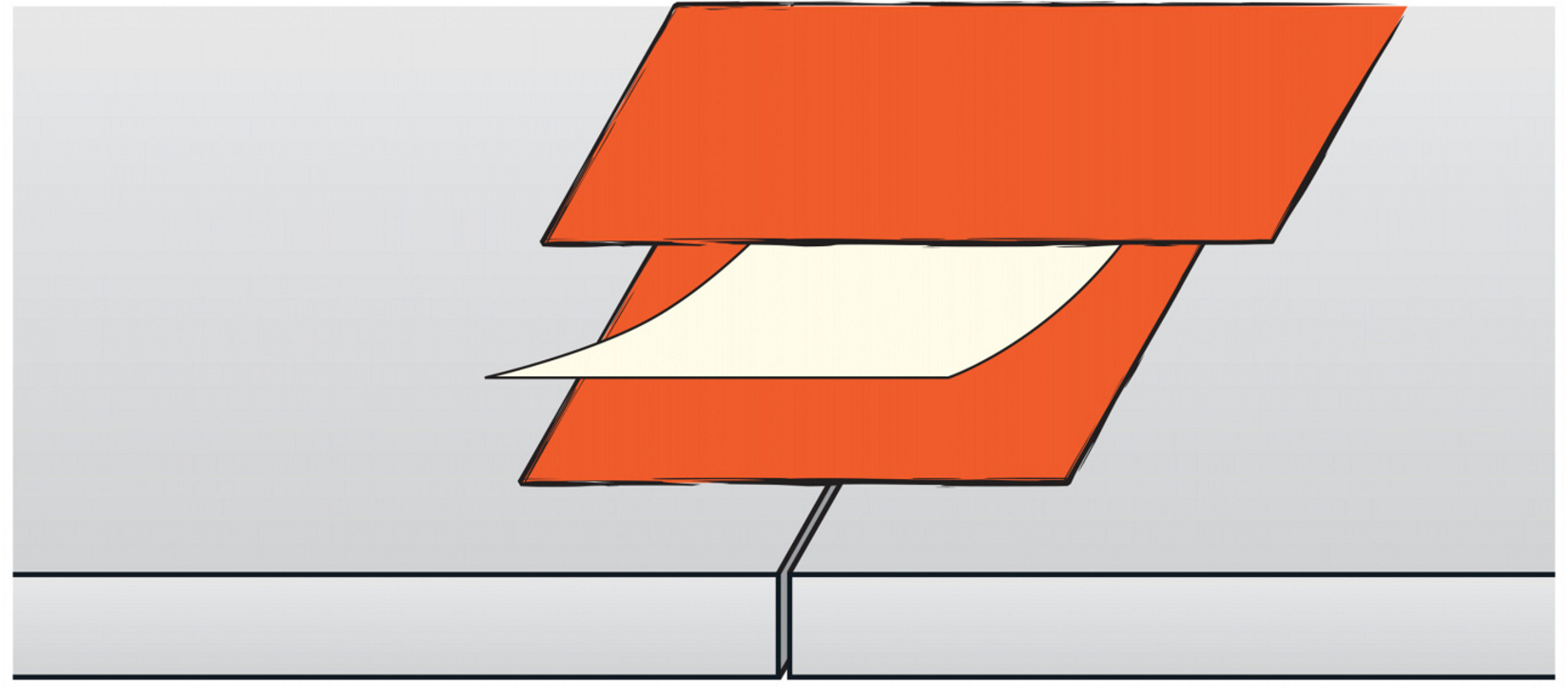 • Desky Habito H jsou z výroby dodávány s příčnou hranou kolmo řezanou. Je doporučeno tuto příčnou kolmou hranu zachovat bez další úpravy (zkosení) a sousední desky montovat na těsný sraz. Spoj desek je třeba vždy vyztužit výhradně skelnou páskou . Při následném kotvení břemen do opláštění z desek Habito H se tímto minimalizuje snížení deklarované únosnosti vrutů v oblasti příčných spár mezi deskami.