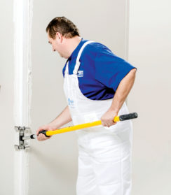 Alternativně je možno ochranný rohový ALU profil připevnit „nasucho“ vhodnými sponkami a následně přetmelit. Tato aplikace však není vhodná pro více exponované oblasti.