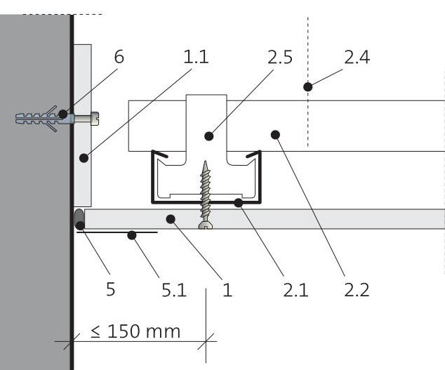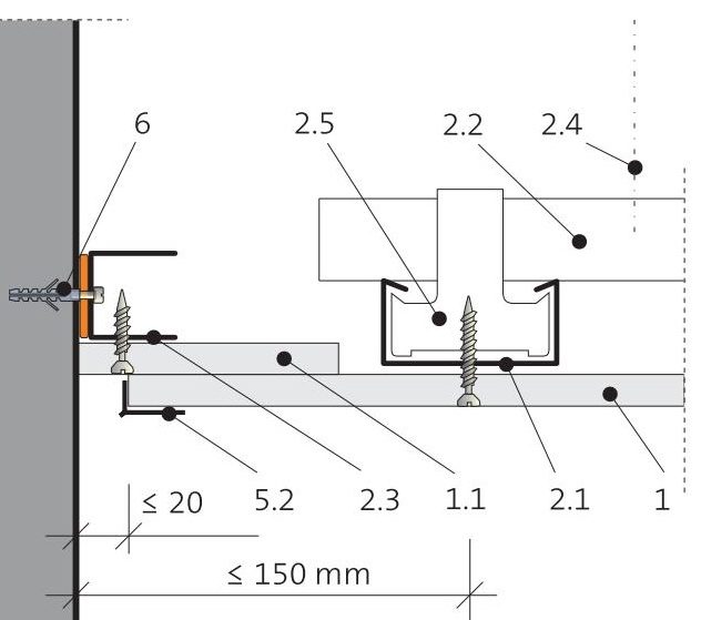 Napojení podhledu na stěnu – pevné bez profilu (5.60.01)