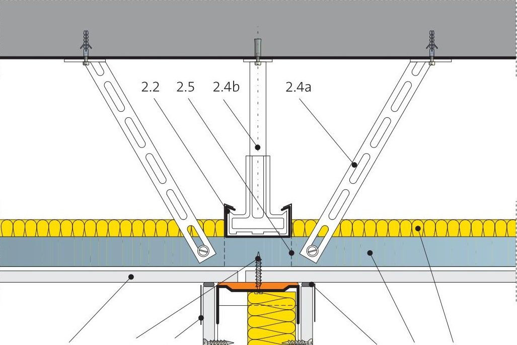 Napojení podhledu k SDK příčce – příčka dotažena ke stropu (5.60.40)