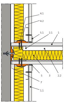 - Kluzné redukované napojení příčky na fasádní sloupek „Stěna ve stěně“ (5.23.10)