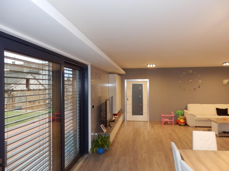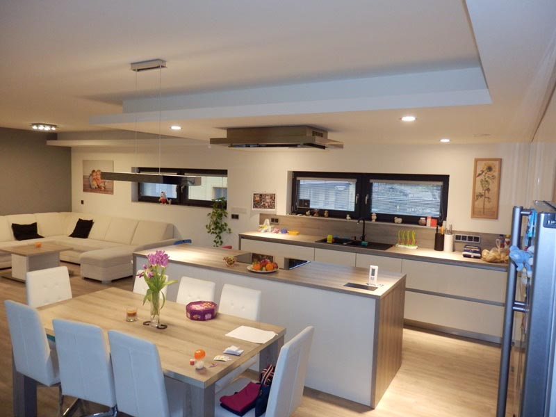 Novostavba rodinného domu byla provedena formou moderního a efektivního stavění v konstrukčním systému dřevostavby. Obvodový plášť a vnitřní stěny jsou provedeny za pomoci konstrukčních desek Rigidur a RigiStabil. Velký důraz byl majitelem kladen na zdravé a komfortní bydlení. Proto bylo využito desek s technologií Activ‘Air® . Na podlahy byly použity sádrovláknité dílce Rigidur. Ty podporují nejen rychlost samotné výstavby, ale lze je kombinovat s velmi příjemným podlahovým vytápěním. Firma odvedla skvělou práci při realizaci nosných konstrukcí, ale také si uměla pohrát s celou řadou estetických detailů, jako je například světelná rampa s nepřímým osvětlením v obývacím pokoji nebo ostrůvek s různou výškovou úrovní v kuchyňském koutě.